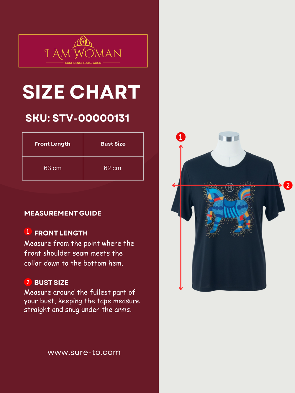 Black T-Shirt with a Rhinestone-Studded Colorful Horse DesignLength: 63 cmBust: 62 cm