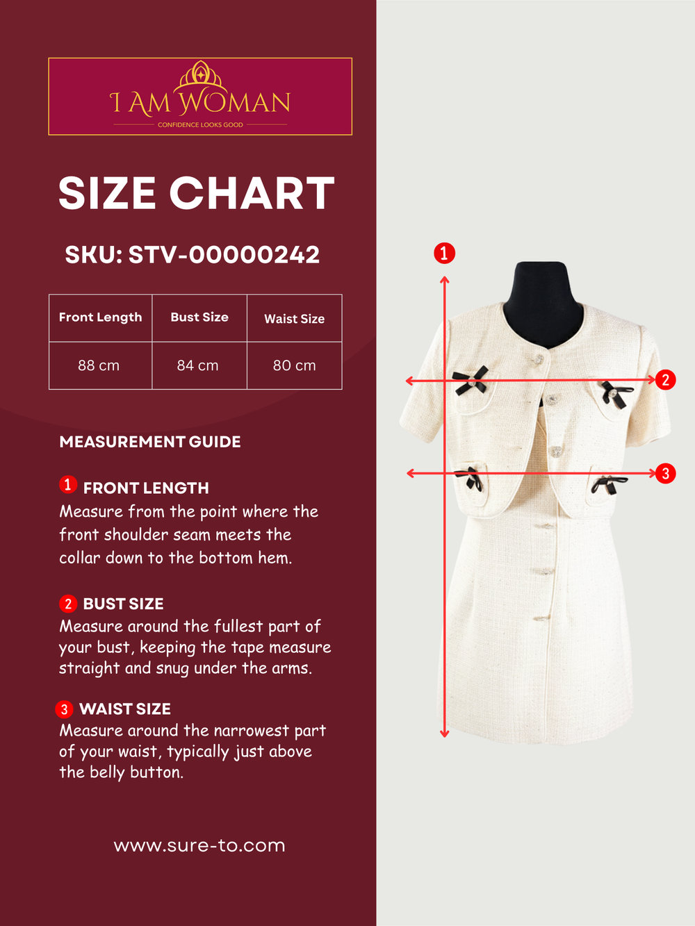 Cream Textured Bow Accent Blazer DressLength: 88 cmBust: 84 cmWaist: 80 cm