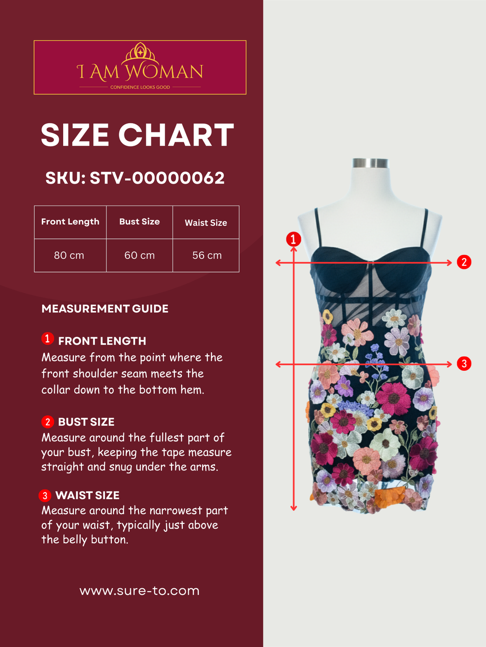 Floral Embroidered Mini DressLength: 80 cm Bust: 60 cm Waist: 56 cm