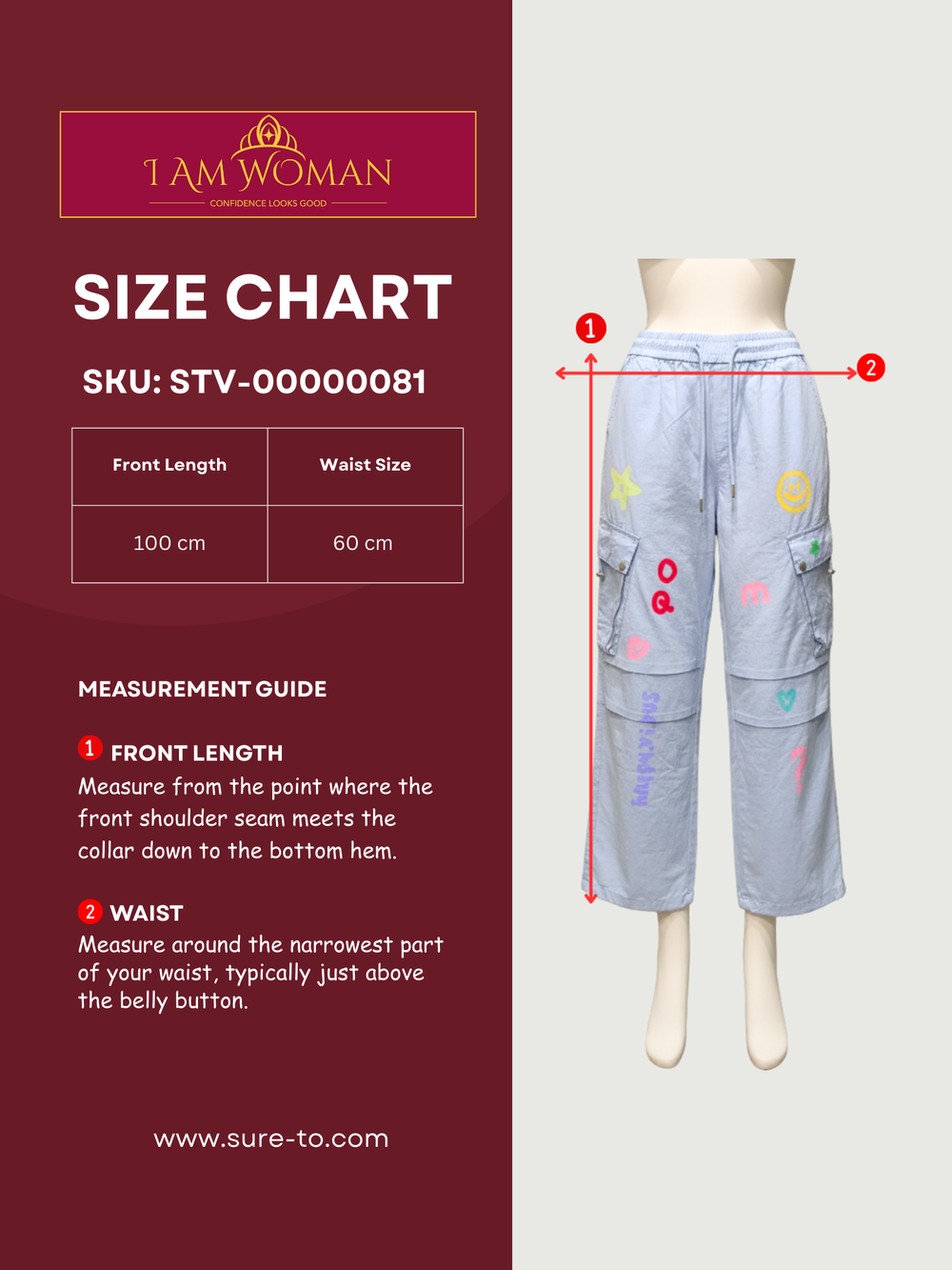 Light Blue Graphic Cargo PantsLength: 100 cm Waist: 60 cm