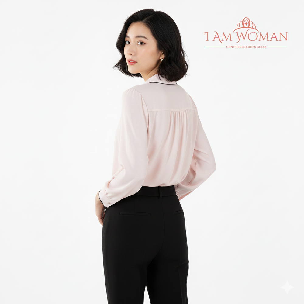 Light Pink Blouse with Black Liner Design Length: 56 cm Bust: 92 cm