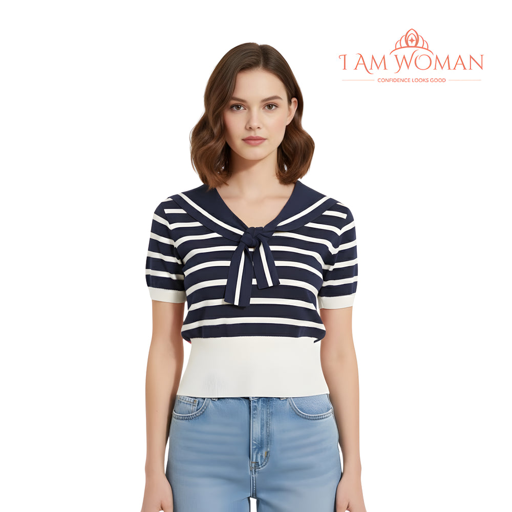 Navy & White Striped Sailor TopLength: 52 cm Bust: 83 cm