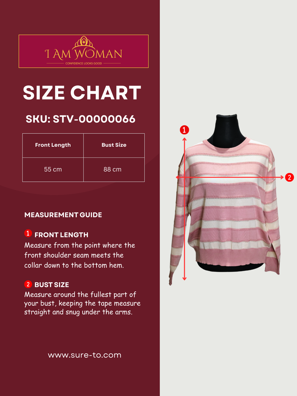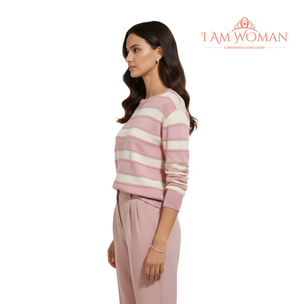 Pink and Beige Striped SweaterLength: 55 cm Bust: 88 cm