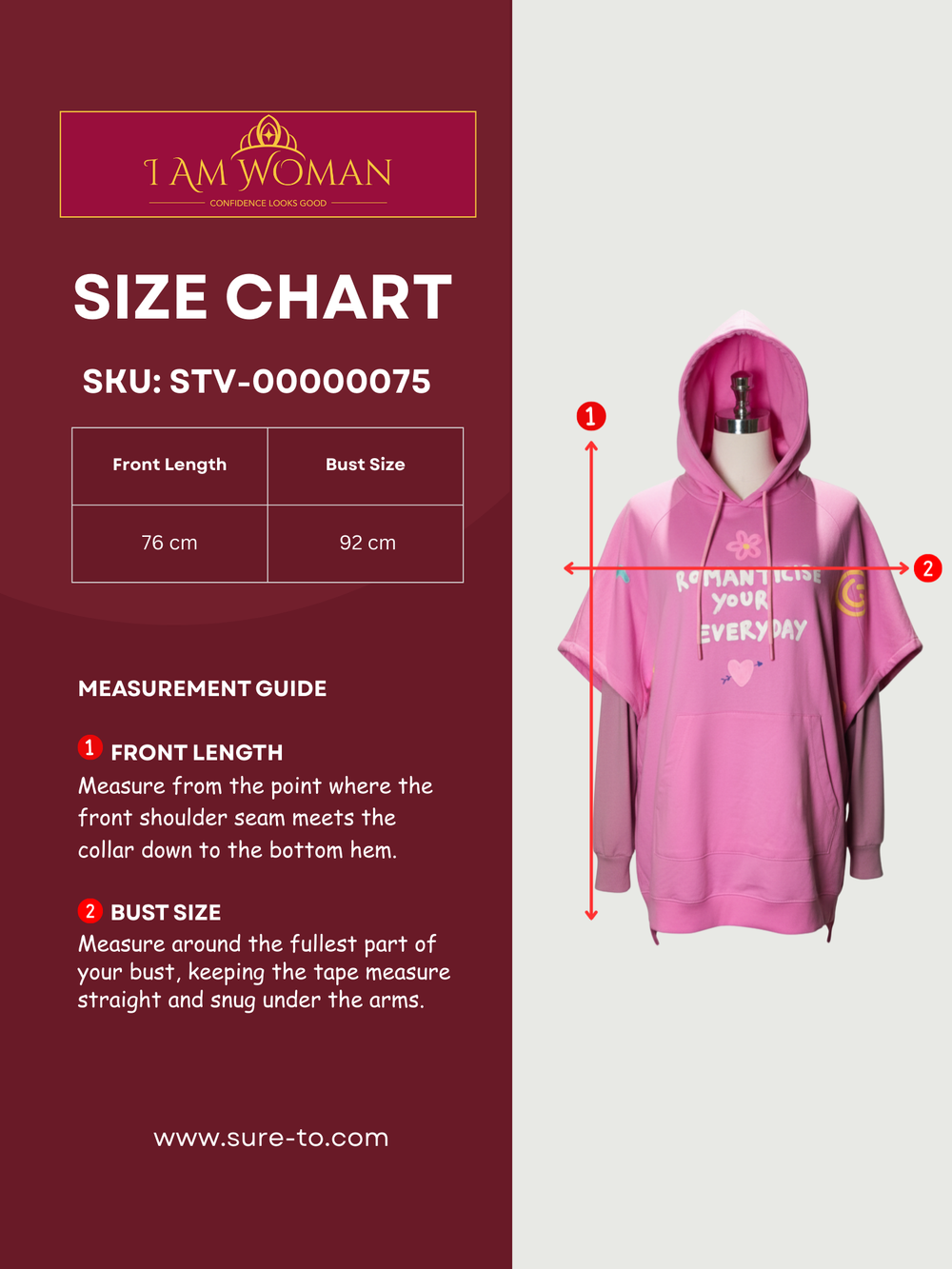 Pink "Romanticise Your Everyday" Short-Sleeve HoodieLength: 76 cm Bust: 92 cm