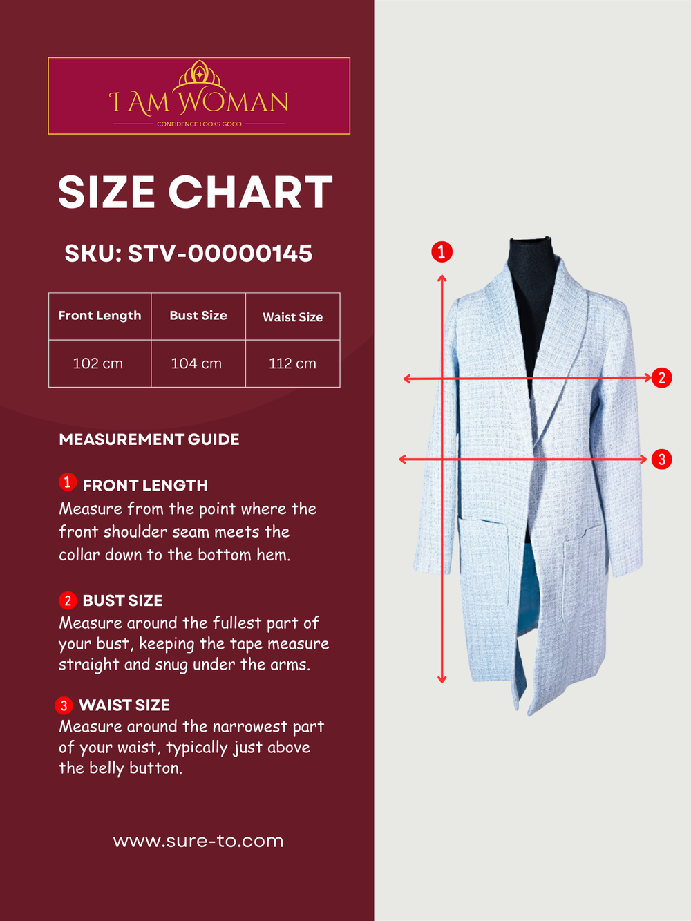 Powdered Blue Tweed BlazerLength: 102 cmBust: 104 cmWaist: 112 cm