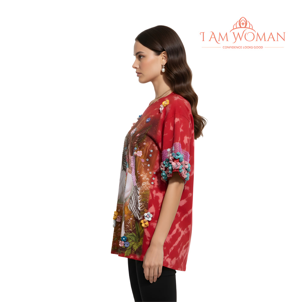 Red Baroque Print T ShirtLength: 74 cm Bust: 90 cm Waist: 81 cm